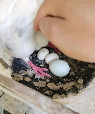 人工孵化:若鸽子持续不孵蛋,可采用人工孵化(温度38-38.6℃,湿度55%-60%),并定期翻蛋、照蛋检查发育情况。