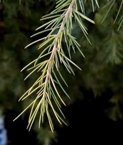 结构与颜色:针叶边缘有细锯齿,表面光滑,背部可能有气孔线,横切面呈三角形或半圆形,内含1-2个维管束和树脂道。颜色多为深绿色或蓝绿色,部分品种带银白色斑点。
