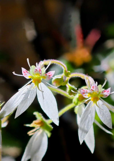 花期范围虎耳草的花期较长,通常从春季持续到秋季,跨度为4月至11月。其中,盛花期多在5月至8月,此时白色小花密集开放,花瓣带有紫红色或黄色斑点。