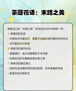 荼蘼的花语是末路之美,因为它在春天最后的时候开花,代表着末路的繁华与凄凉。荼蘼的花语也有分离之后的悲伤之意,荼蘼花在春季末开花,看到它开花,也就象征着春天即将结束。荼蘼花也寓意感情走到尽头、美丽即将消亡,也可以用来形容女子的青春即将逝去。