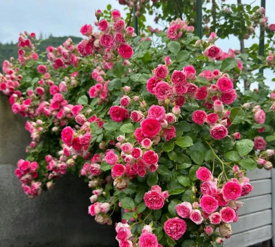 浪漫比克,勤花而且花量、花期长,大单花花期可达20天,是一个比较易养的月季品种,非常适合阳台盆栽观赏。