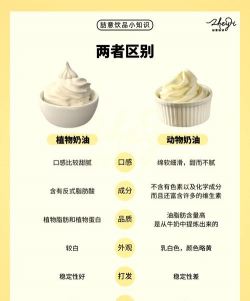 1、动物奶油是天然牛奶提取物制作而成的,而植物奶油是用棕榄油和玉米糖浆人造而成的。2、动物奶油不容易打发,很难做造型,容易化掉,而植物奶油容易打发,且不容易化掉,多用来裱花。3、动物奶油的颜色要偏黄一点,口感更清爽,而植物奶油颜色是纯白,口感香甜。