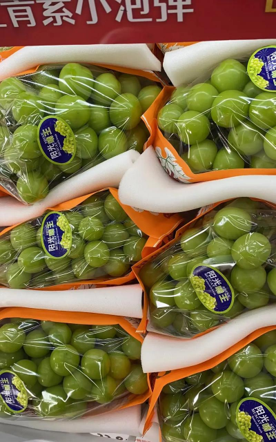 阳光玫瑰葡萄丰产、稳产、大粒、抗病、耐贮性好、栽培简单,果实着生紧密,呈椭圆形,颜色为黄绿色,果面有光泽,鲜食品质极优。
