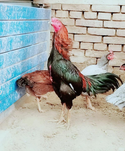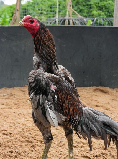 母鸡:结构匀称,发育良好,活泼好动,眼大有神,体重2.5公斤以上优秀的斗鸡品种通常具备以下共同特征:毛短而稀(减少被对方咬住的机会),头小而直,眼睛深陷,皮厚,脚大而直挺,鸡距发达,举止稳重不乱动。毛色方面,以青(黑)、红(紫)、紫、皂为上色,白色、芦花、柿黄毛为下色。斗鸡行家有“只喂青、红、紫、皂,不喂白、柿、花毛”的说法,各种羽色要求色正、光泽好,有白沙尾,带白边翅。从血统角度看,斗鸡的选择特别重视“岗份”即血缘关系纯度。至少考察2-3代血统,经过近亲繁殖选育成纯度很高的优良斗鸡家系,利用不同家系间斗鸡交配产生的后代通常体质健壮,斗技高,打法快,但遗传性不稳定,不宜作种用。因此,专业斗鸡养殖场应建立完整的血统档案,这是保证斗鸡品质的基础工作。