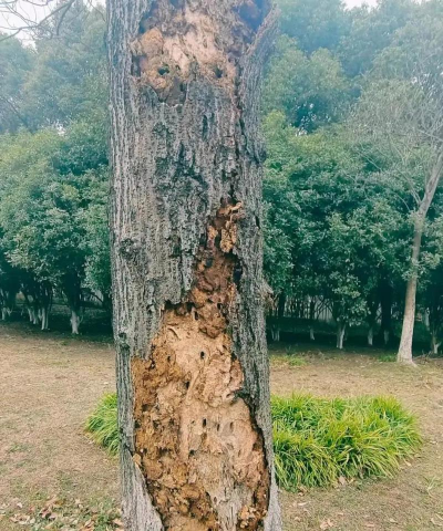 机械损伤:施工断根、人为刻划或修剪过重会破坏树木生理平衡。