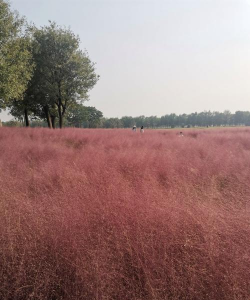 粉黛乱子草在玉溪市江川区大街街道陆家咀村,粉黛乱子草是禾本目、禾本科、乱子草属植物,顶生云雾状粉色花絮,花期在9-11月,成片种植可以呈现出粉色云雾海洋的壮观景色,景观可由9月份直到11月中旬,这时候的观赏效果极佳。粉黛乱子草原产于北美大草原,中国上海、杭州等地均有种植,多年生暖季型草本,株高可达30-90厘米,宽可达60-90厘米。顶端呈拱形,绿色叶片纤细。