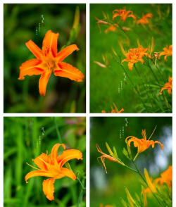 形态:萱草根系肉质,中下部纺锤状膨大;叶片基生成丛,条形或披针形,长40~80厘米;花葶高60~100厘米,顶端着生6~12朵花,花冠漏斗形,橘红色至橘黄色,内花被裂片下部常有“∧”形斑纹。单朵花仅开放一天,朝开暮谢,无香味。