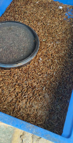 成鸡(3周龄后) :每日投喂800-1000克黄粉虫,或按体重2%计算(如1000斤鸡每天2000克)。