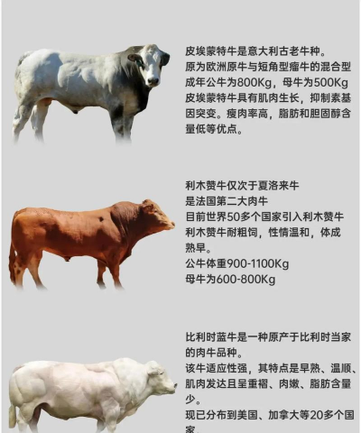 选择西门塔尔牛、夏洛莱牛等生长速度快、抗病性强的杂交品种,或改良后的秦川牛、鲁西黄牛。犊牛优先选择骨架大、精神活泼的个体。