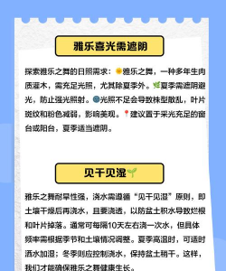 冬季养护:控水、停肥,移至室内温暖处,温度不低于5℃。通过以上方法,雅乐之舞可保持株形紧凑、叶色鲜艳,成为室内外装饰的亮点。若需进一步了解具体操作(如嫁接步骤),可参考相关来源。