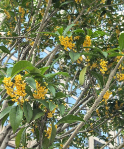 金桂:9月下旬至10月上旬开花,花色橙黄至金黄色。