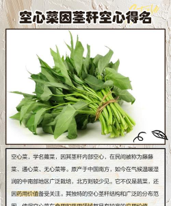 茎部空心,学名蕹菜,广泛种植于中国南方,广东人称为“通菜”,寓意茎部通畅。