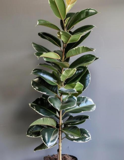 常见变种:包括金边橡皮树(叶缘金黄色)、花叶橡皮树(叶片带黄白色斑块)、白斑橡皮树(叶片有白色斑块)等,观赏性更强但生长势较弱。