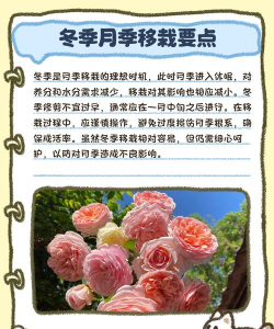 时间:9月至10月(北方可提前至8月下旬,南方可延至11月初)。此时气候凉爽,土壤温度适宜,月季在冬季前能建立健壮根系。