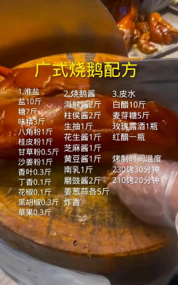 广东并无杭州一带盛产的砚鸭,于是厨师以广东本地的鹅代替,改良成独具广式特色的烧鹅。
