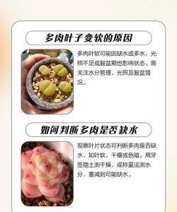 当多肉缺水的时候,首先其叶片会失去光泽,叶子会变得皱巴巴的,叶片会慢慢从两边向中间靠拢,叶子会变得越来越硬。多肉水浇多了,土壤积水,透气性变差,导致缺氧,会产生有毒物质,会出现烂根的现象,同时也会滋生细菌。