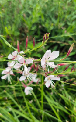 千鸟花是多年生宿根草本植物。千鸟花又叫山桃花,植株高度可达1米左右,常见于公园或绿化带中。千鸟花丛生,叶片单生于茎上,叶片无叶柄,叶形整体呈椭圆披针形,叶面光滑叶色鲜绿,花色为粉白色,内面的上半部有柔毛,花期是在每年的5-8月份,果期是在8-9月份,果子成熟后,内部有种子。
