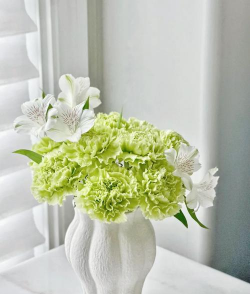 混合搭配:可搭配雏菊、满天星等配花,将配花插在康乃馨间隙,增加层次感。例如雏菊可留长茎,营造“飞出去”的动感。