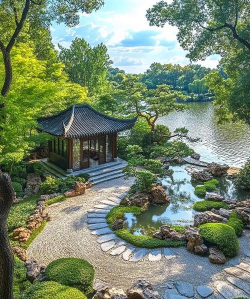 园林里面有千日红、牡丹、月季、玫瑰、康乃馨、散尾葵、银叶菊、枫树、桃花树、樱花树、松柏树、蝴蝶兰、太阳花、四季海棠、薄荷、扶桑花、昙花、玉簪花、芍药花、百合花、荷花、槐树、薰衣草、朱顶红、万寿菊、大丽菊、晚香玉。