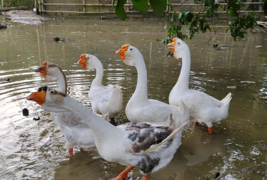 扬州鹅:人工培育品种,结合四川白鹅与太湖鹅优点,产蛋多且肉质好。