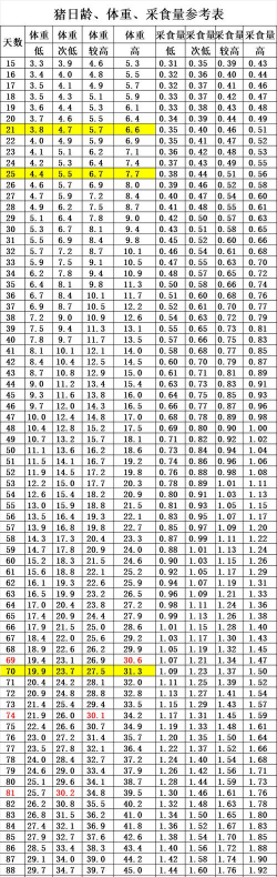 临产母猪等腹部下垂情况:体重=(胸围×体长×0.7/100)+8~12kg修正值。