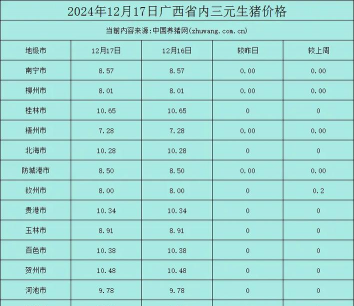 南宁生猪价格是多少