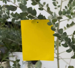 利用蚜虫等大棚害虫的趋色性,在温室内挂一些黄色粘虫板诱杀害虫。根据试验,在生产番茄和黄瓜的日光温室内1.5~1.8米高处,每亩悬挂40厘米×24厘米黄板20~25张,可使蚜虫的虫口密度降低20%~40%,每茬作物减少用药5~8次。