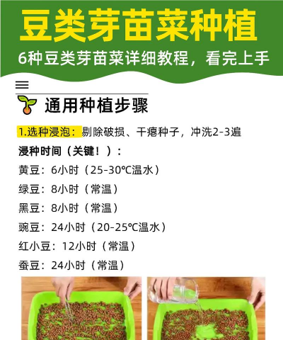 绿豆:发芽快(通常4-7天),适合初学者,水温20-23℃浸泡6-7小时