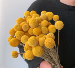 干花特性:黄金球无需特殊处理即可自然风干,制成干花后仍保持鲜艳色彩和球形姿态,经久不衰,是婚礼捧花、胸花、家居装饰的常用材料。