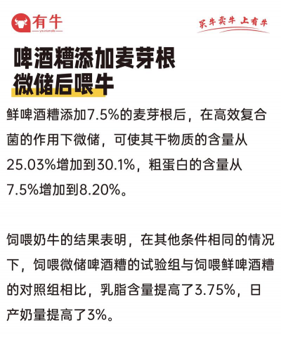 泌乳牛:鲜啤酒糟建议不超过10-15公斤/天,且产后1个月内应少喂或不喂,以免影响生殖恢复。