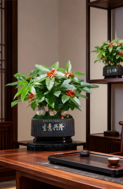 寓意财源广进,适合摆放在办公桌左侧(青龙位),象征事业上升。其耐阴易养,叶片宽大能吸收负面能量。