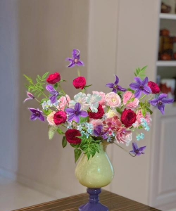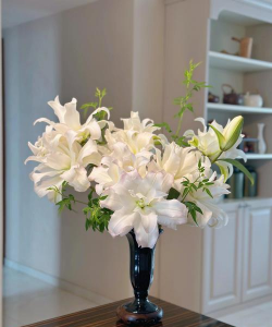 推荐花材:百合、马蹄莲、晚香玉(夏季);菊花、红枫(秋季);蜡梅、一品红(冬季)。