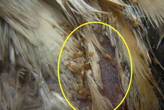 种类与特征:分为体虱和羽虱。体虱白天躲藏在鸡舍缝隙中,夜间吸血,可能导致鸡贫血甚至死亡;羽虱终生寄生在羽毛上,以羽毛和皮屑为食,引发瘙痒、脱毛和皮肤炎症。