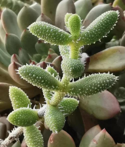 雷童多肉适宜在松软的沙壤土中生长,如果土质太粘重,根部的呼吸受阻,就会导致它生长不良。雷童多肉的生长离不开充足的光照,通常在春秋季,要把它放到阳台或庭院里充分受光,但到了夏季则要适当遮阴,以免植株被晒伤。雷童在生长初期养殖时,每隔3~4天浇一次水,当新叶生长出来后再接受正常光照。在生长中期,每隔1个月施加1~2次磷钾复合肥或稀薄的饼肥水,等到土壤完全变干后再浇水。