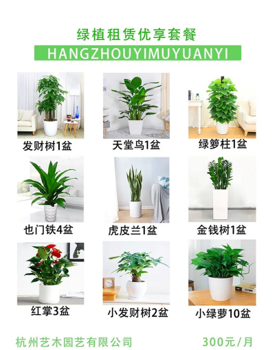 单株租赁:按盆计价,适合需求灵活的场景,平均30-50元/盆/月。
