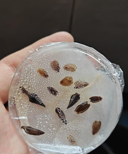 成熟种子为浅褐色,未完全干燥时可能略带黄色,干燥后颜色加深。