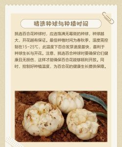 以下是百合花种球的种植方法,综合了多个可靠来源的信息,并分为关键步骤进行说明: