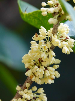 四季桂花色多为白色或淡黄色,花量较少且香气较淡,但花期最长,几乎全年可开花(以春秋季为主)。部分品种如“月月桂”花色可能更浅。其他说明: