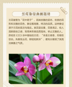 君子品格。兰花作为花中四君子之一,其花姿挺拔,是一种高洁典雅的象征,经常被寓意为君子品格。可将其送给身边品格高雅的人,称赞其如同君子一般令人敬仰。