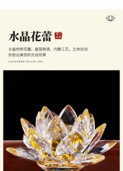 在风水学中,水晶莲花被视为招财进宝的吉祥物。莲花的高贵形象与水晶的璀璨光泽相结合,寓意荣华富贵和财富积累,常被用于吸引财运和提升社会地位。