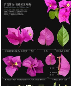 光叶子花茎干上弯刺的长度为5~15毫米,颜色从浅绿色变成深绿色,花瓣的形状为长圆形、椭圆形,花色为紫色、红色,花期在3~7月份。叶子花茎干上弯刺的长度为4~12毫米,颜色为深绿色,花瓣的形状为椭圆状卵形,花色为暗红色,花期在11~6月。