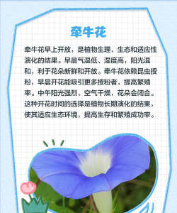 白天闭合晚上开花的植物有萱草花、曼陀罗、昙花、月见草、月光花。月光花的花序呈五边形,花瓣紧紧相连,形状呈椭圆形、宽卵形,颜色为白色,花瓣会向内翻折,长度为7~12厘米,宽度为3~5厘米,花丝细短,颜色为浅绿色。叶片的形状呈卵形,顶端呈锥形,底部呈心形。