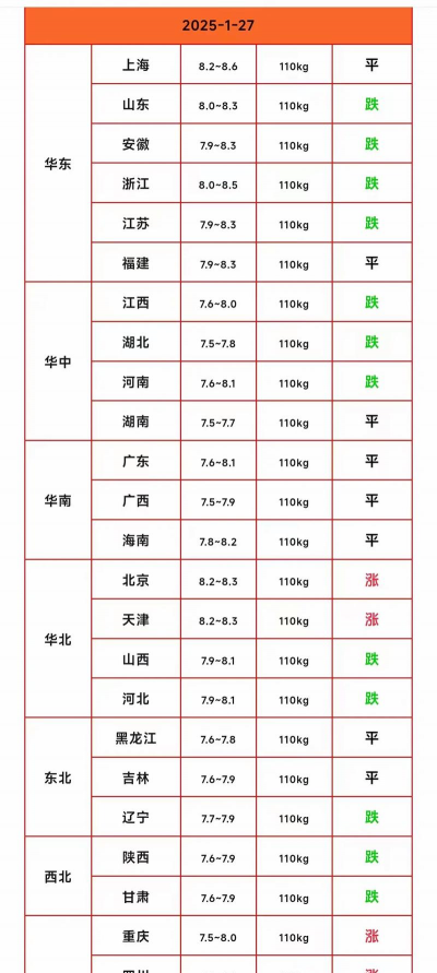 西南(四川5.3~5.6元/斤)、东北(黑龙江5.6~6.0元/斤)。