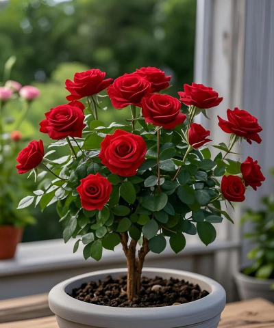 美观搭配:若兼顾装饰性,红色玫瑰可搭配黑色陶器或透明水晶花瓶,提升观赏性。总之,玫瑰盆栽宜选 深型、透气材质、排水良好 的花盆,并根据生长阶段逐步调整大小,以保障根系健康与开花质量。