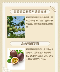 百香果之所以叫做百香果,是因为其果实含有的香味中包含了草莓、香蕉等多种水果的清香,在种植百香果时需要为其补充适量的水分,帮助植株的生长,同时也需要补充适当的养分,促进植株果实的发育生长。