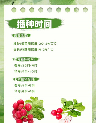 樱桃小萝卜有一定的耐寒能力,在气温高于8℃的时候它就能够生长,所以一般情况下,早春时节就可以种植,这样才能更早的收获,如果是在大棚内栽种的话,那么种植时间还可以提早一点。