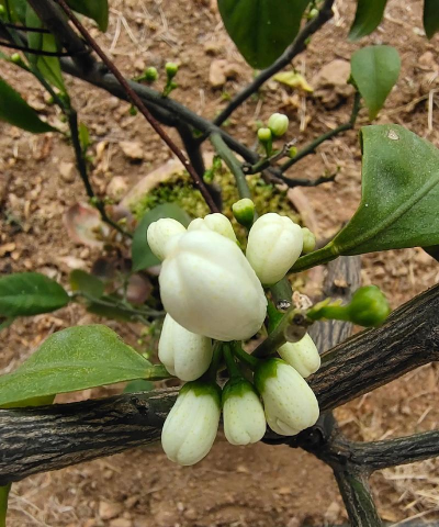 由于柑桔挂果数量多,果树萌发的新枝经过修剪后,在高温强日照射下,受光一面容易裂果。