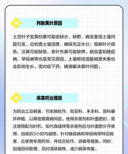 土豆的叶子发黄,还有可能是病害导致的,比如晚疫病、早疫病和黄萎病等,出现这种现象后,需要使用专用的药物对植株进行喷洒治疗,后期还需要细心养护,做好通风管理,否则不及时治疗,土豆植株就会枯萎死亡。