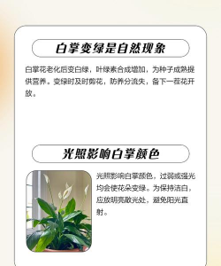 白掌(又称白鹤芋)的花朵或苞片变绿是一种常见现象,可能由多种因素引起,包括自然生理变化、环境因素或养护不当等。以下是具体原因及对应的解决方法: