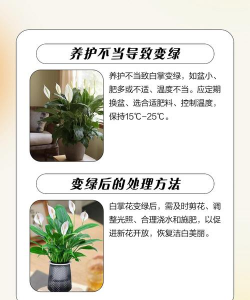 白掌变绿多为自然现象或养护不当的信号。通过调整光照、施肥和环境,多数情况下可恢复或预防。若因衰老变绿,无需过度干预,正常修剪即可。